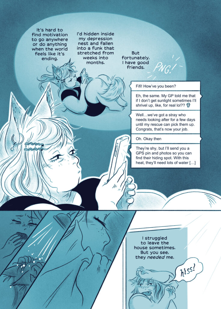 Sarah Winifred Searle originally hails from spooky New England, USA, and now lives in sunny Perth, Australia, with their beloved spouse and cat. They write and draw comics, exploring themes of identity, health, relationships, and history across many genres.