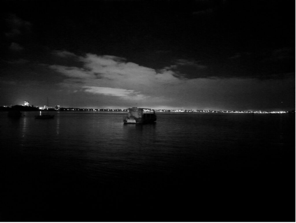 In a cycle such as ‘Ghost Vessels’, a sense of time shifting with the river is constructed through the shifts in narrative—from this photo/text to that photo/text, but also in the narrative itself. Who is imposing the reading of ‘ghost’ on what is essentially predictable, quotidian, even mundane? Other people are maybe looking at what is being photographed at that very moment and having very different thoughts (or even similar thoughts) regarding what is roughly the same framing.