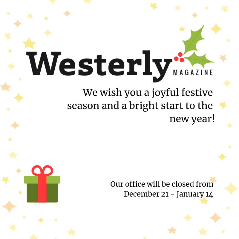 The Westerly office will be closed from 21 December (even editors need a break!). We will be back on 14 January, and will respond to emails as soon as possible then, so ask for your patience in the meantime. Our online portal for general submissions will re-open in February ahead of Westerly 64.1.
