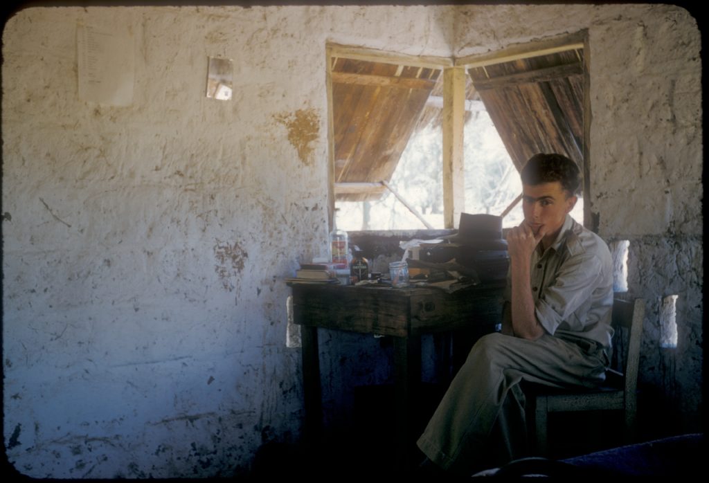 ‘Self at home’ — Stow in his thatched mudbrick house at Forrest River Mission, 1957. Collection: National Library of Australia: Papers of Randolph Stow MS Acc10.128